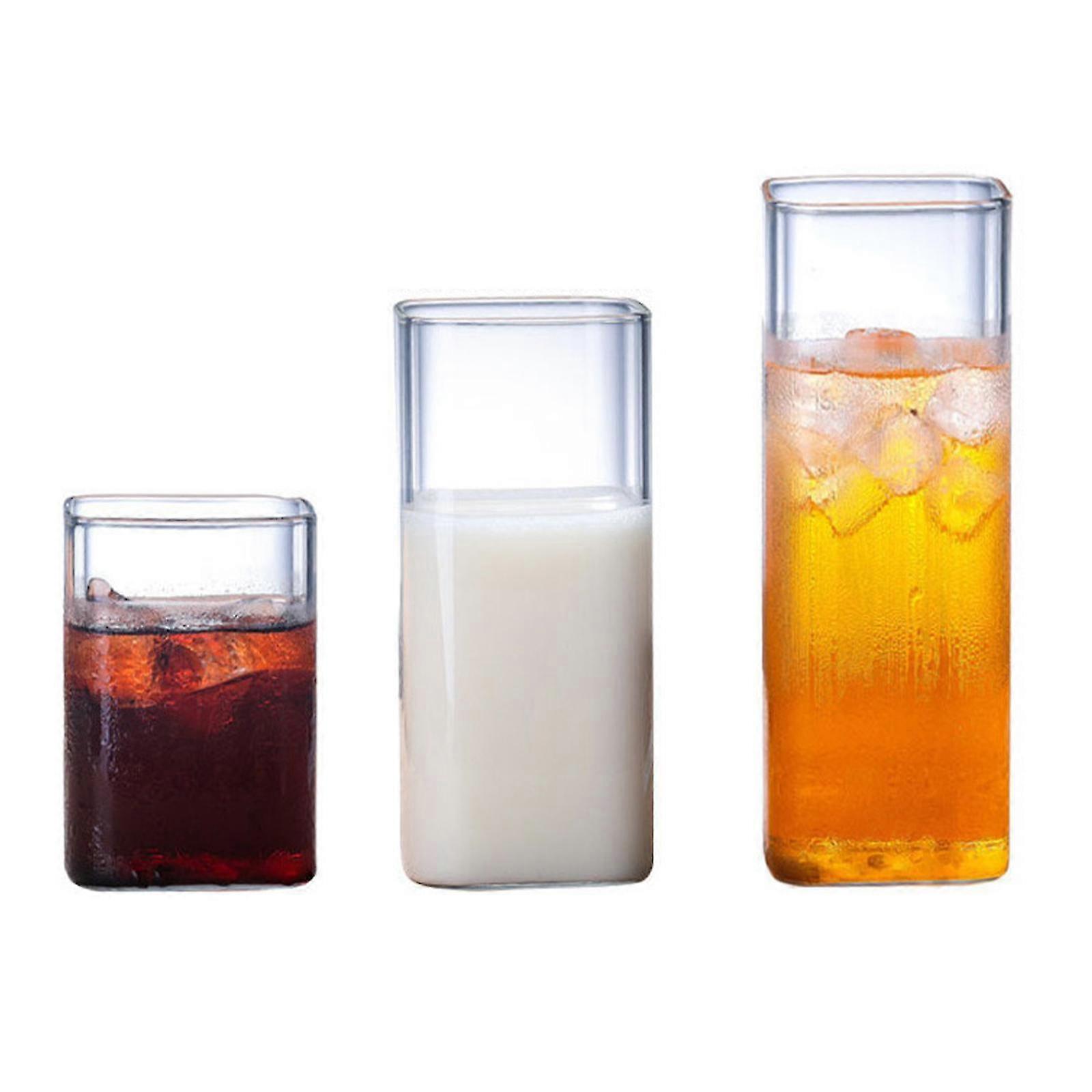 26-27 3pcs Square Transparent Drinking Glasses - Heat Resistant Home Use Cups (250ml, 400ml, 500ml)