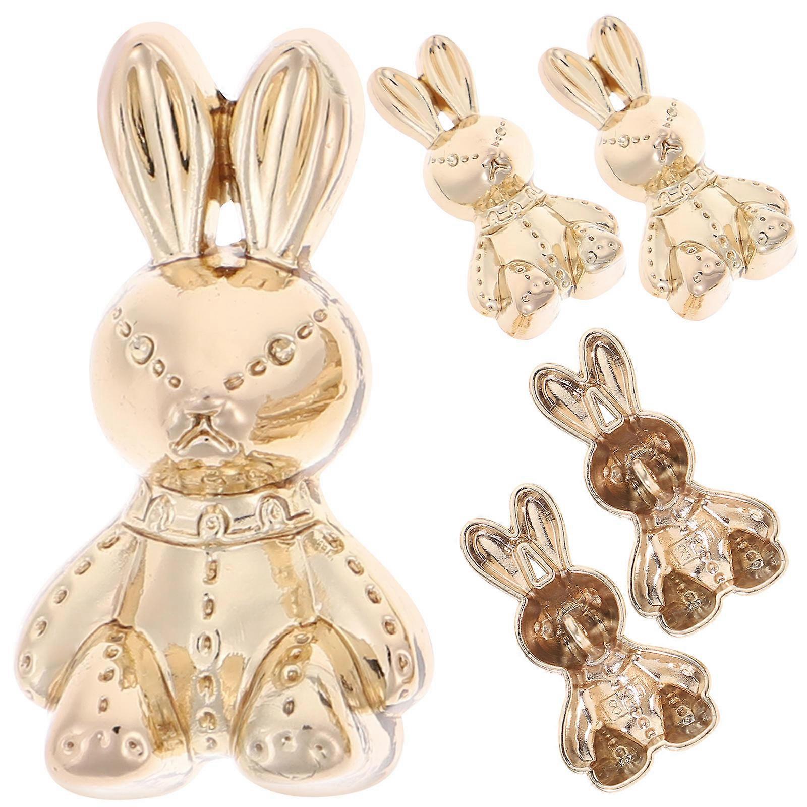 Rabbit Shape Alloy Buttons for Decor Golden Color with Holes for Firm Fixing on Clothes 5 Pieces