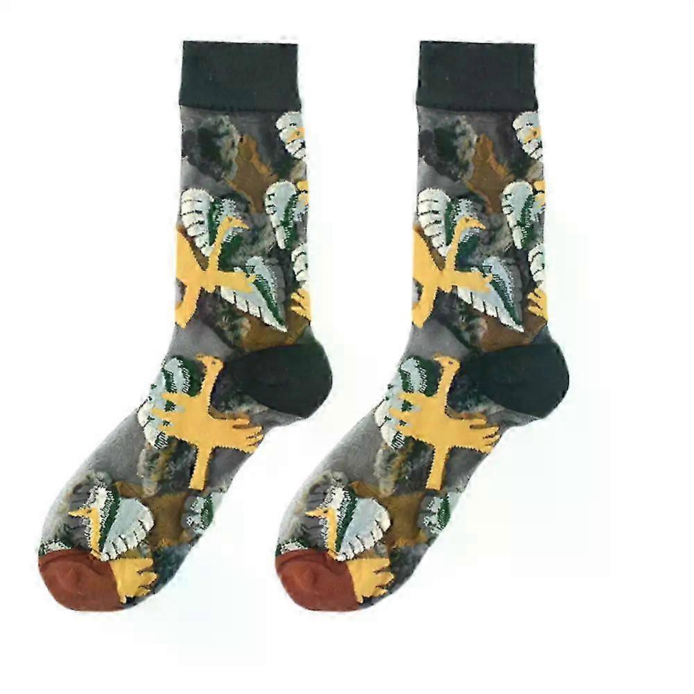 2026 Summer Women Socks Thin Mid-tube Transparent Stretch Elasticity Ankle Cool Socks Girls Trend Print Ultrathin Glass Silk Socks