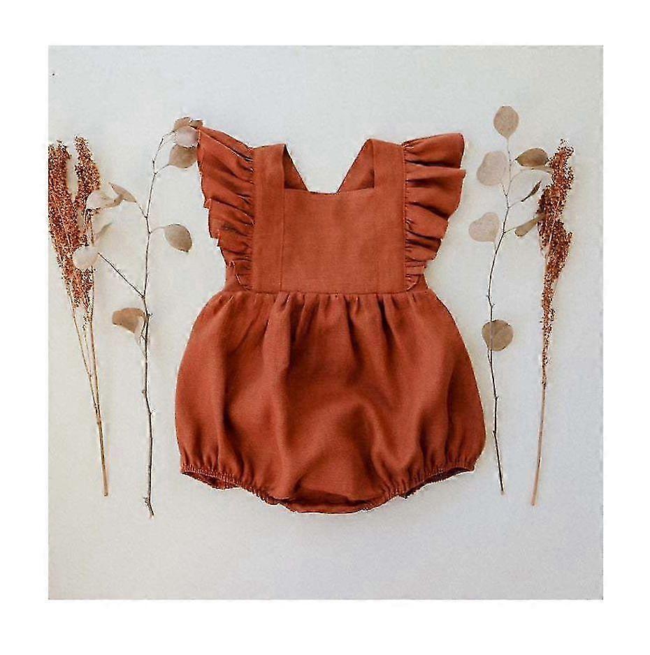 Baby Girls Cotton Linen Romper Ruffle Bodysuit Sling Jumpsuit 26-27s