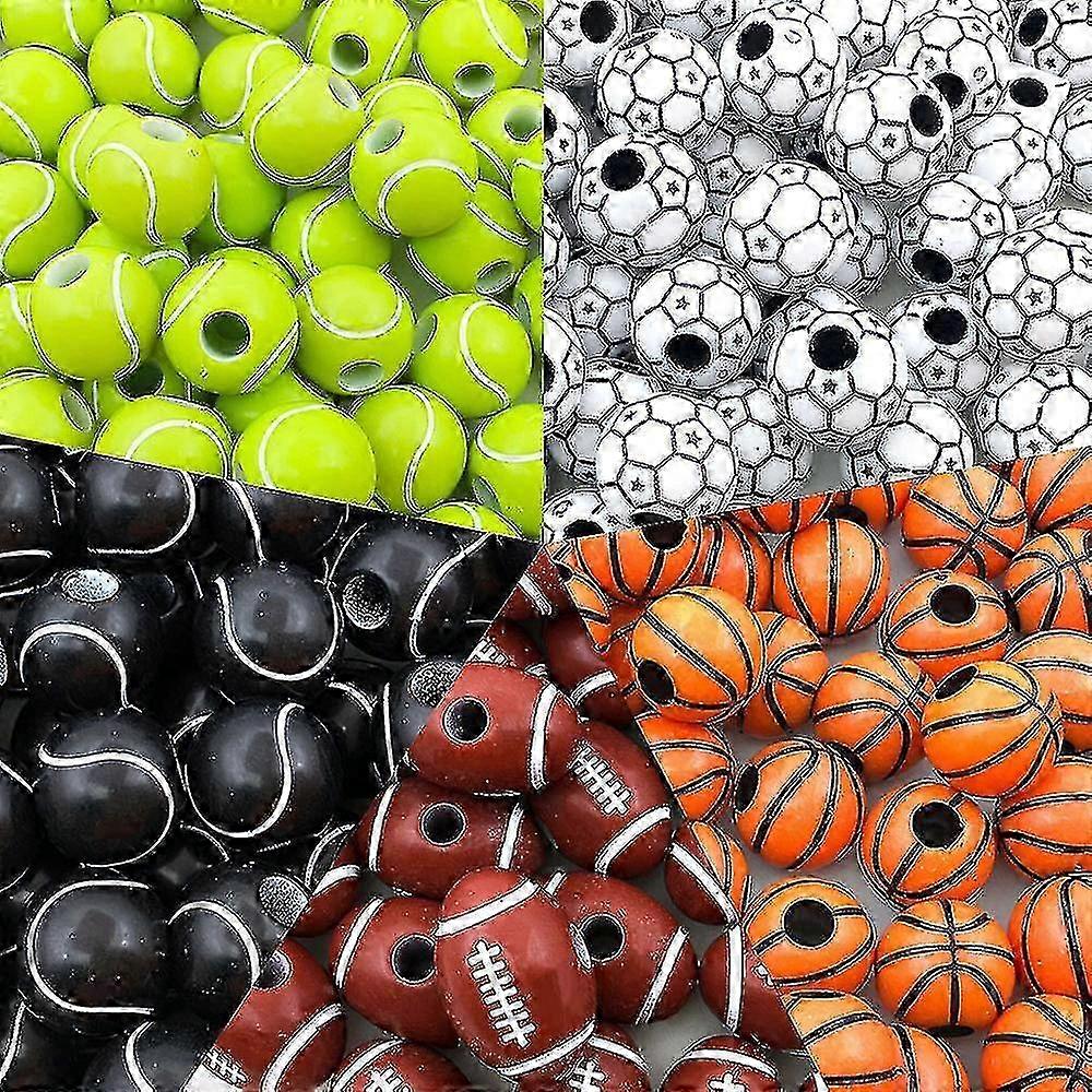 26-27 100pcs Sport Ball Beads Basketball, Tennis, Volleyball, Softball, Football Beads