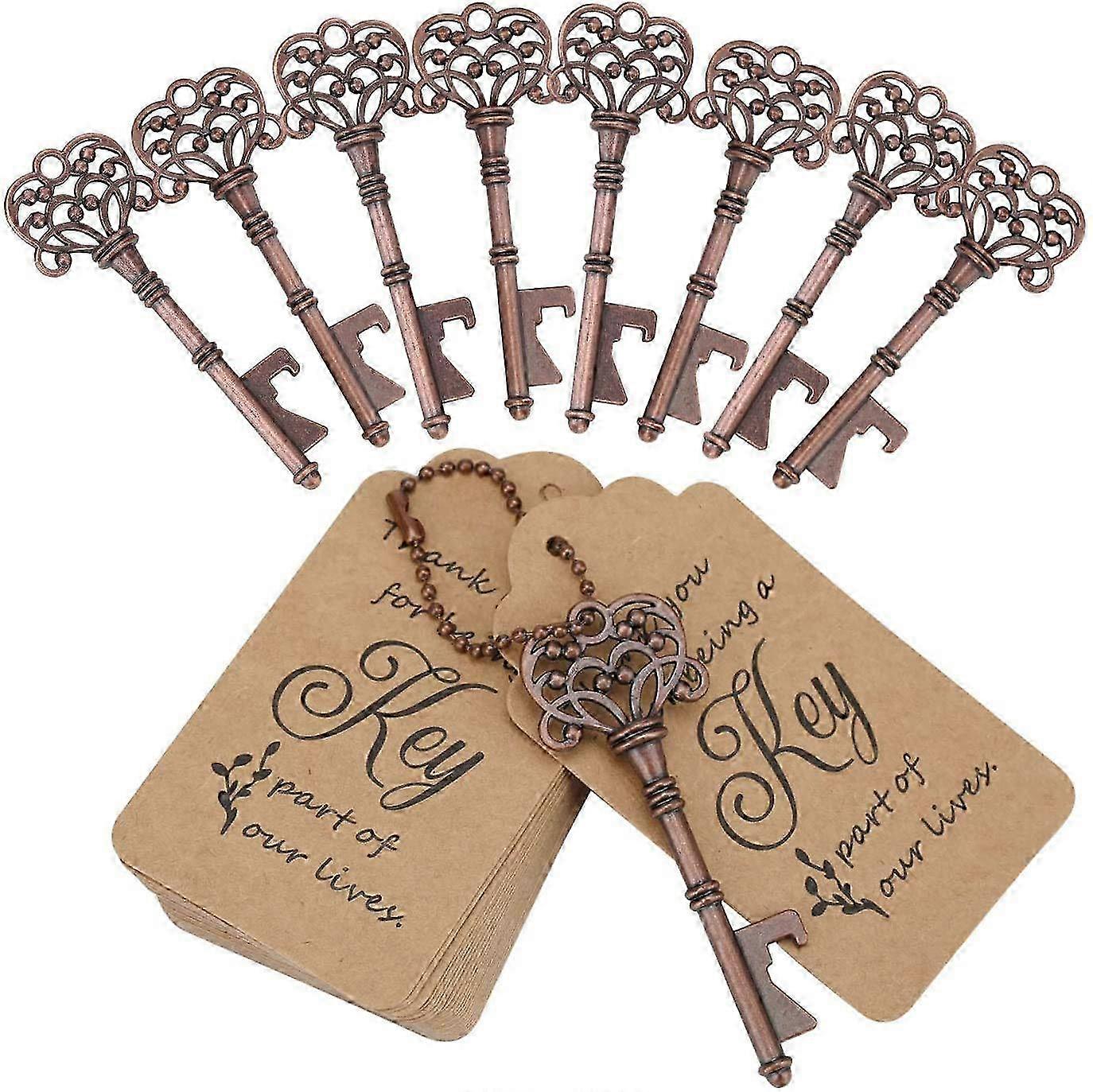 2026 100 PCS Vintage Skeleton Key Bottle Openers with Escort Tags and Key Chains - Wedding/Party Favors