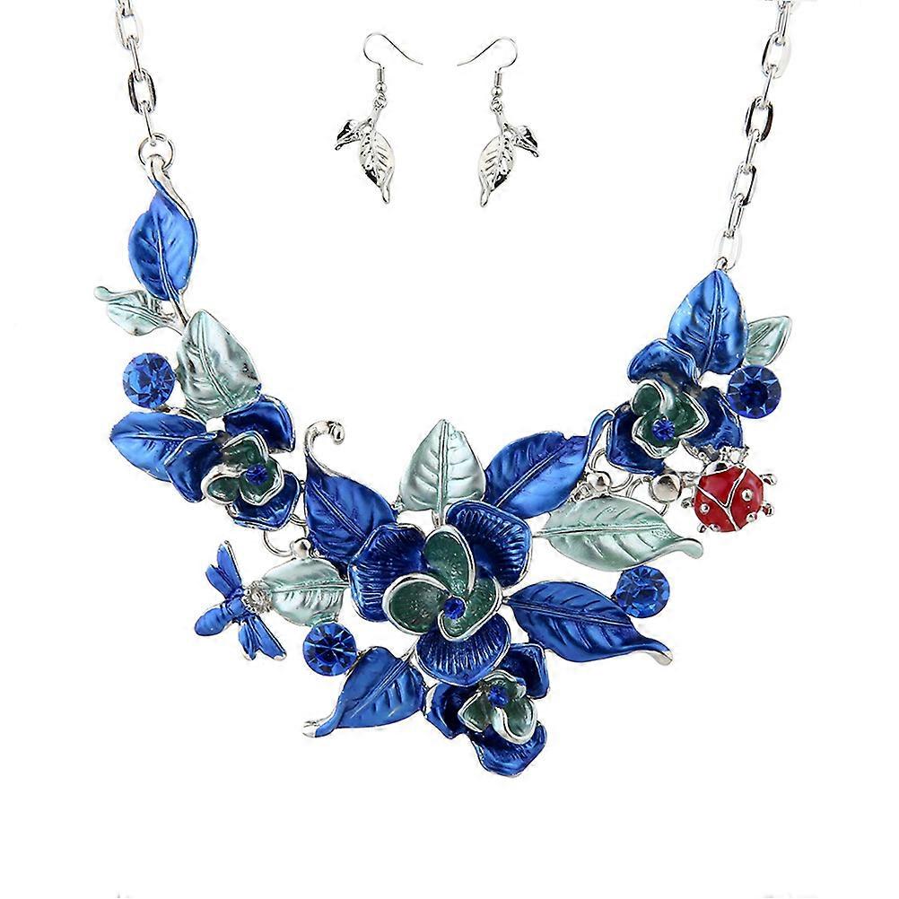 Floral Necklace Set For Women Wedding Engagement Party Accessories In Blue With Flower Design 1Pcs