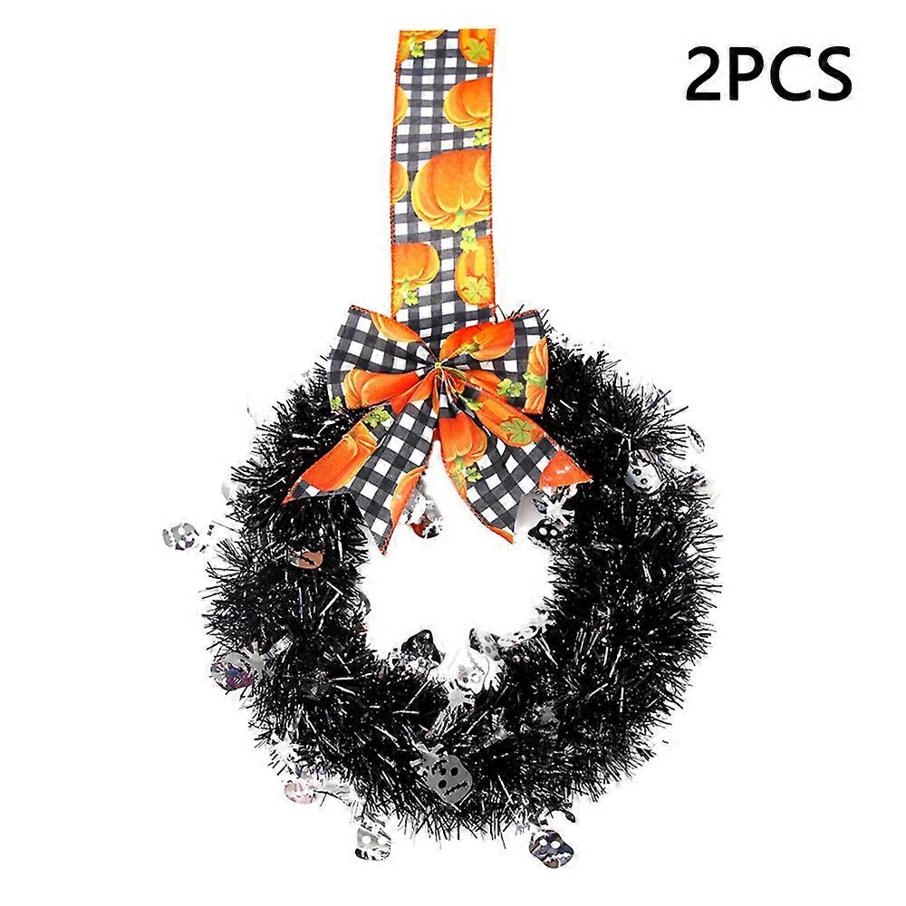 2Pcs/Set Halloween Wreath Bow Tinsel Wreath Front Door Wall Hanging Decoration