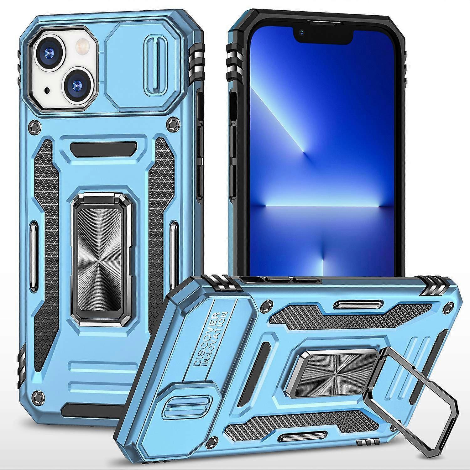 For iPhone 13 6.1 inch Ring Kickstand Anti-Fall Case Slide Camera Cover PC + TPU Cell Phone Protecti