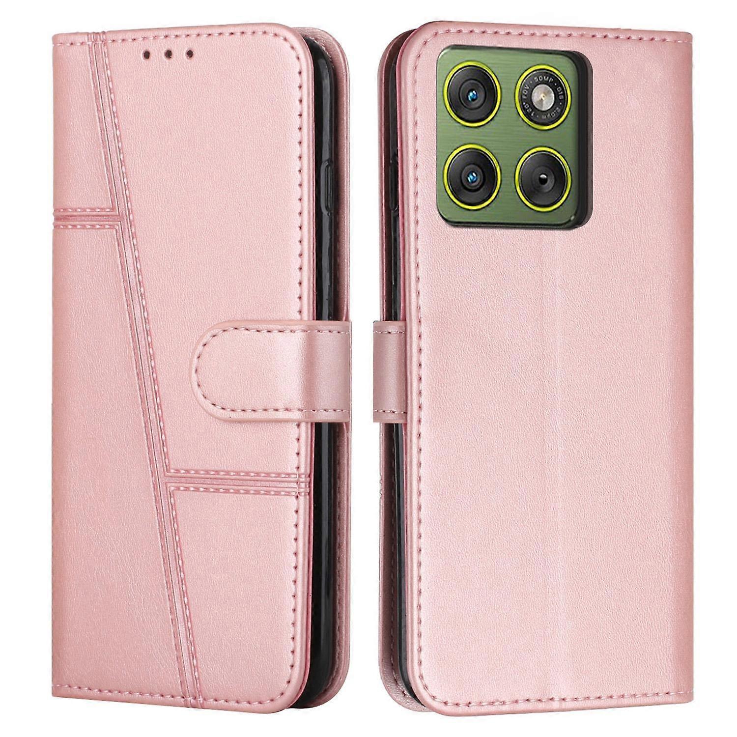 Leather Phone Case For Motorola Edge 70 5G Foldable Stand Wallet Flip Cover with Strap - Rose Gold