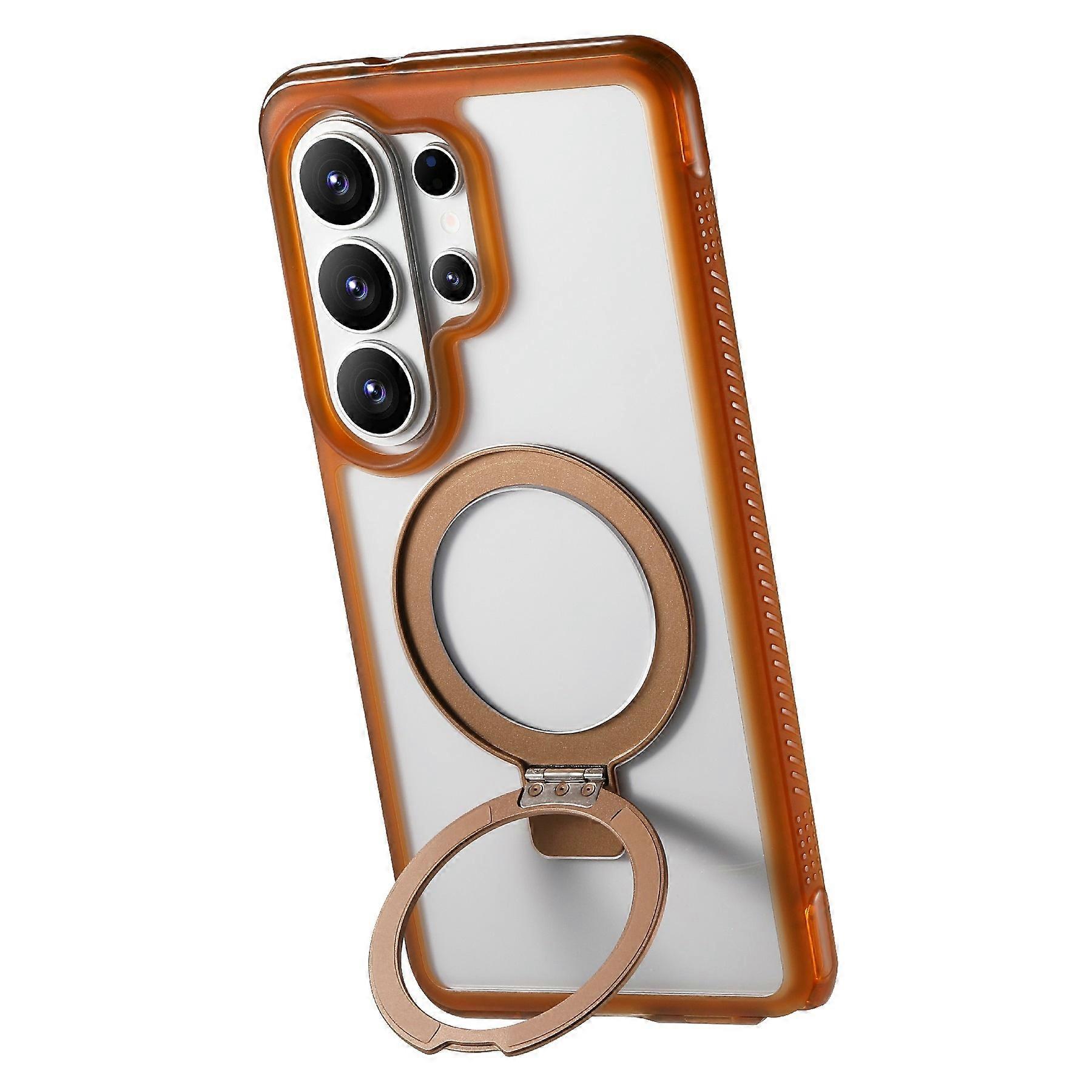 For Samsung Galaxy S26 Ultra Magnetic Case Kickstand Clear TPU PC Phone Back Cover - Coffee