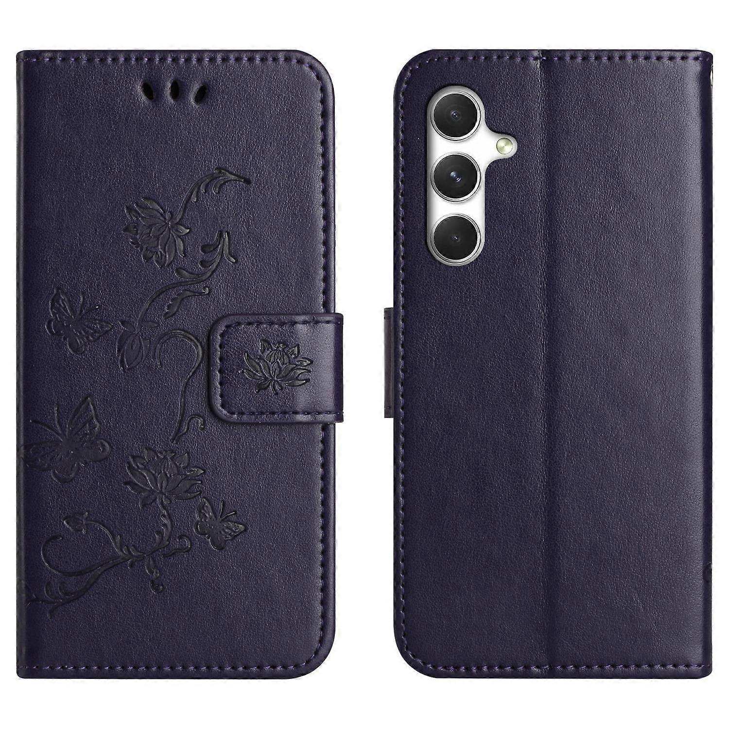 For Samsung Galaxy S26+ Case Wallet Stand Imprinted Butterfly Flower PU Leather Phone Cover - Dark B