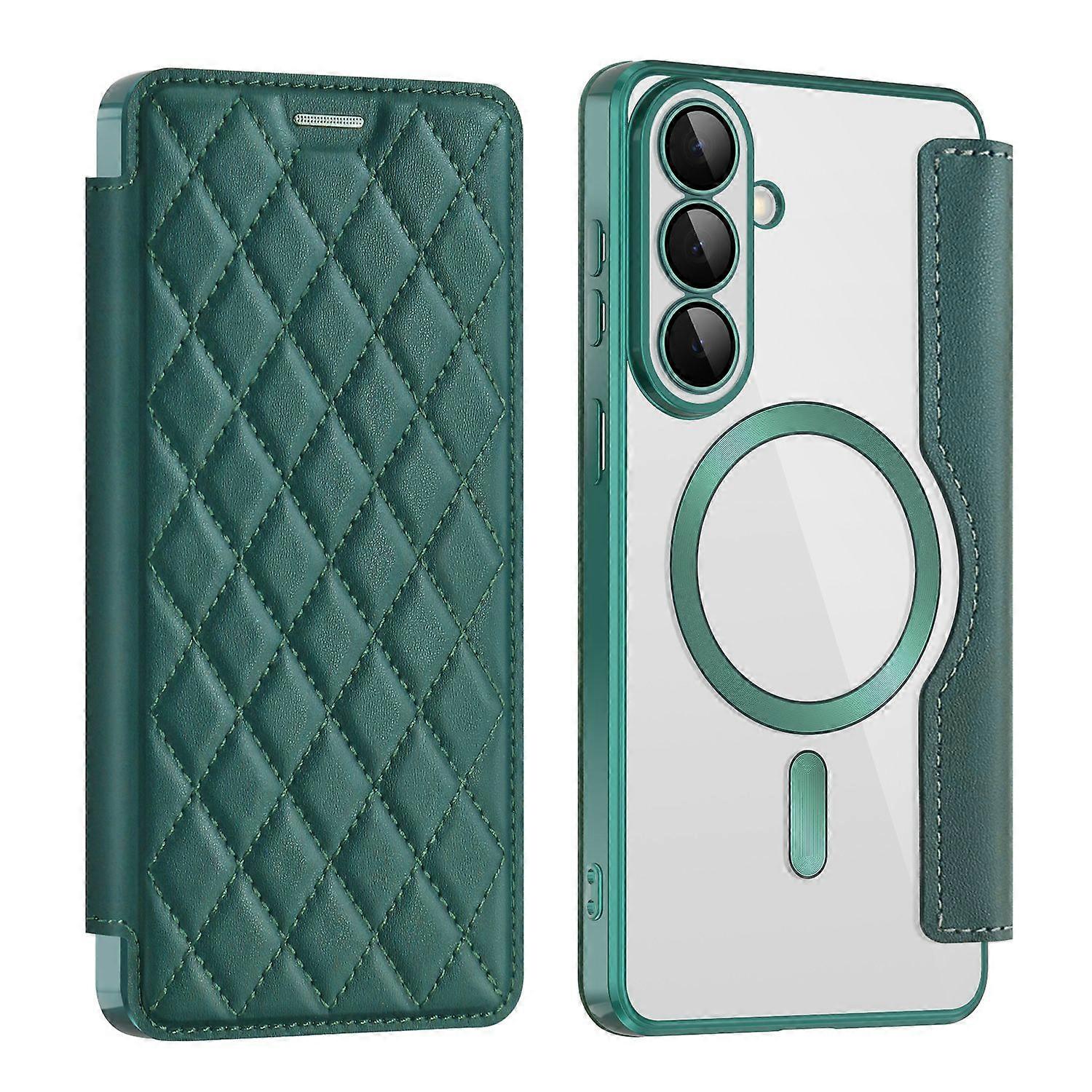 For Samsung Galaxy S26+ Magnetic Case RFID Blocking Card Holder Rhombus PU Leather Phone Cover with