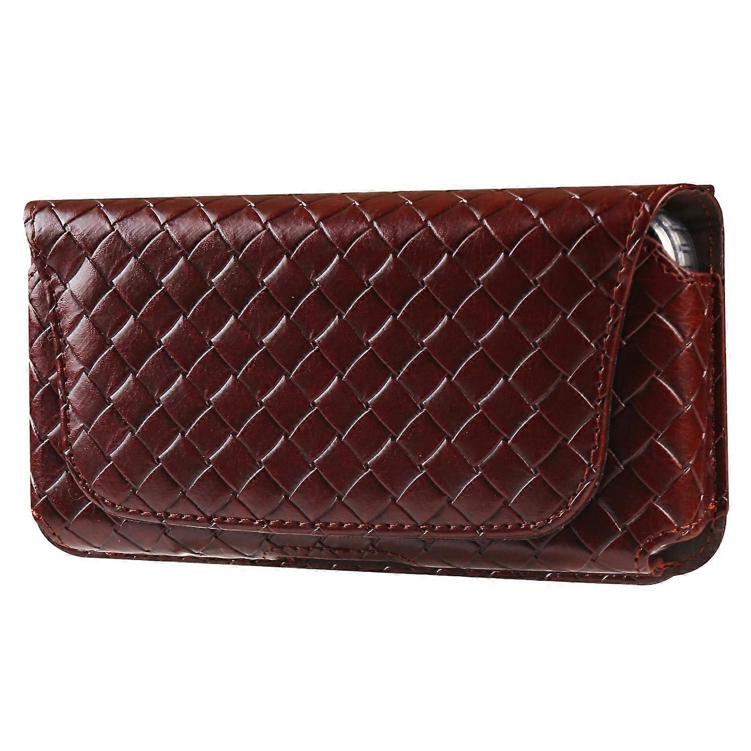 Universal PU Leather Waist Bag For Under 6.5 inches Phone Woven Pattern Horizontal Phone Pouch with