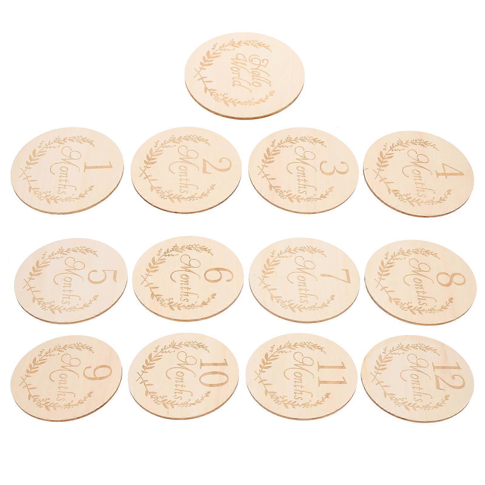 13Pcs Wooden Slices Baby Growth Recording Cards For Featuring Letter Design And Light Yellow Color