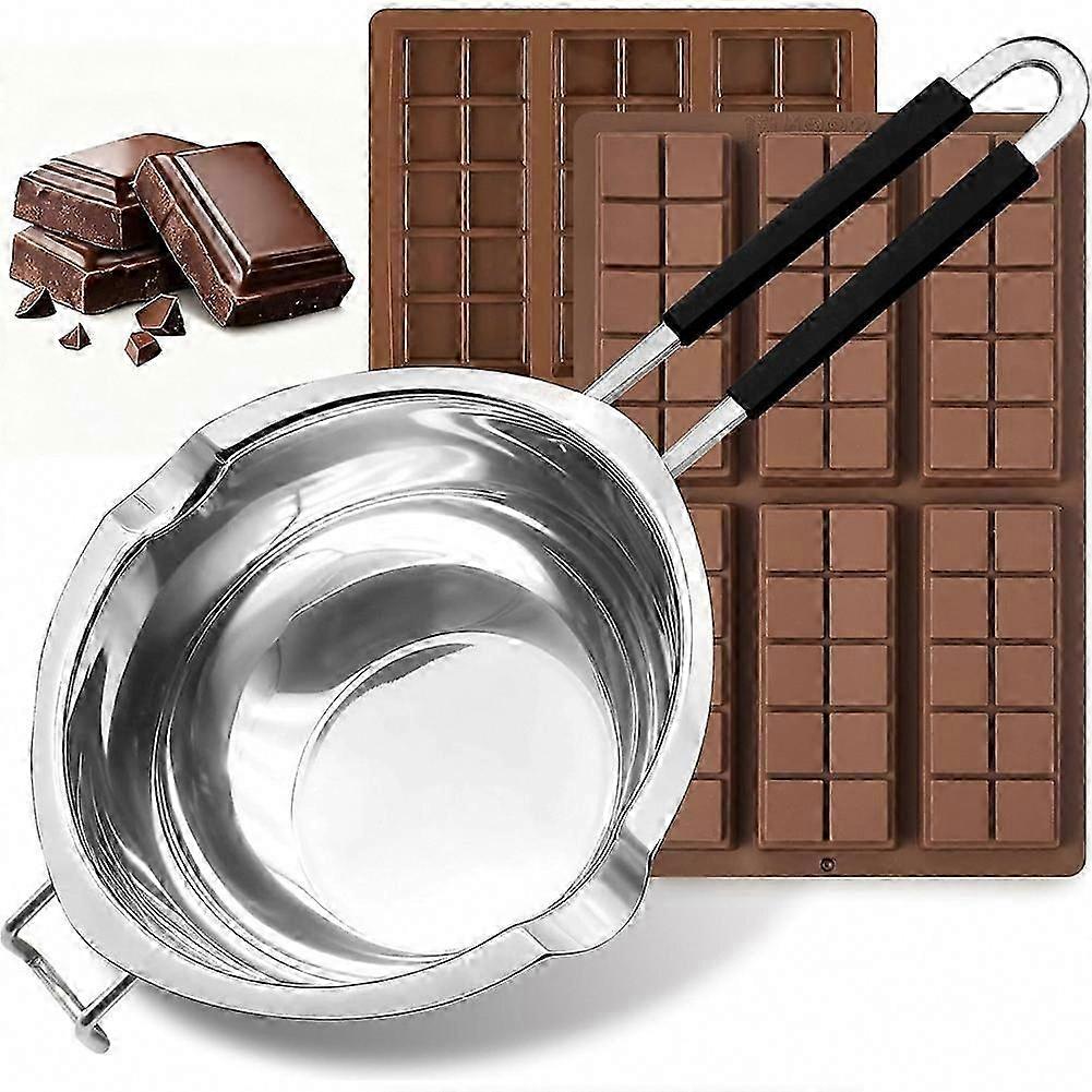 1200ML/1.1QT Double Boiler Pot with 2 Silicone Chocolate Molds, Stainless Steel Melting Pot for Candy Making