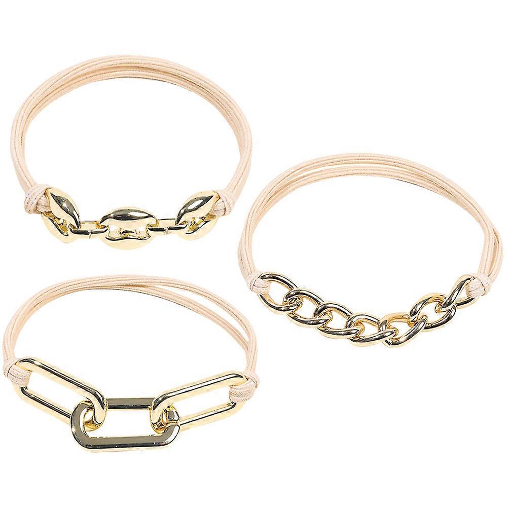 Elastic Ponytail Holder With Metal Hair Decoration Travel Jewelry Item 3Pcs