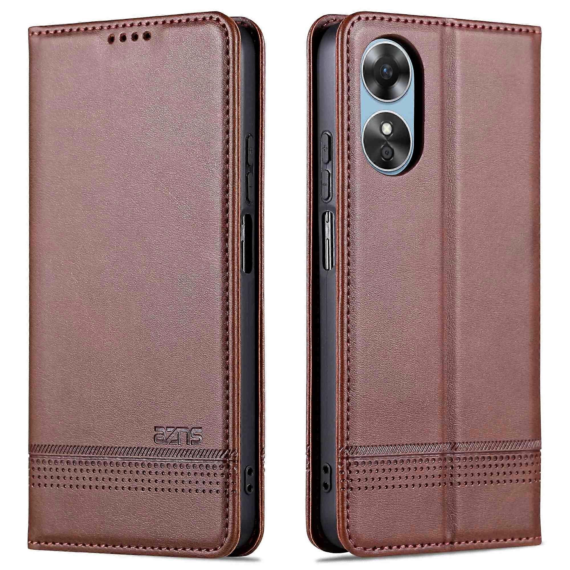 AZNS For Oppo A17 4G/A17k 4G Cowhide Texture Phone Case PU Leather Foldable Stand Wallet Magnetic Au