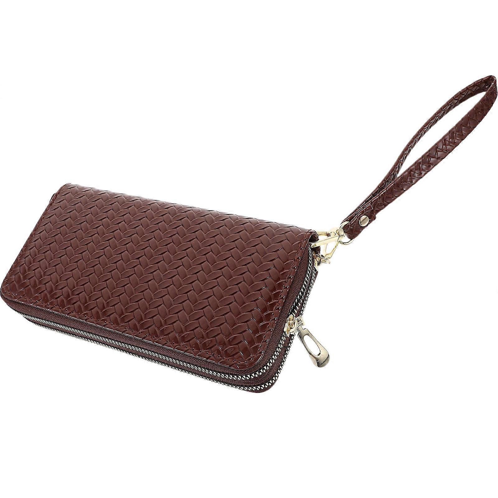 Clutch Purses for Women Double Zipper Long Wallet Brown Cash Storage Portable 1Set