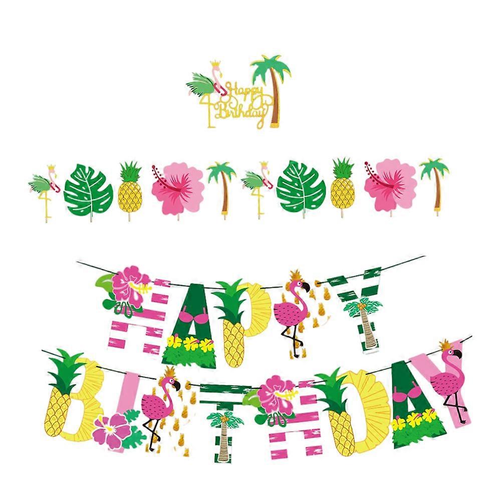 Hawaiian Themed Birthday Party Decorations Flamingo Banner Cake Decoration 1 Set Assorted Color For Kids Celebration