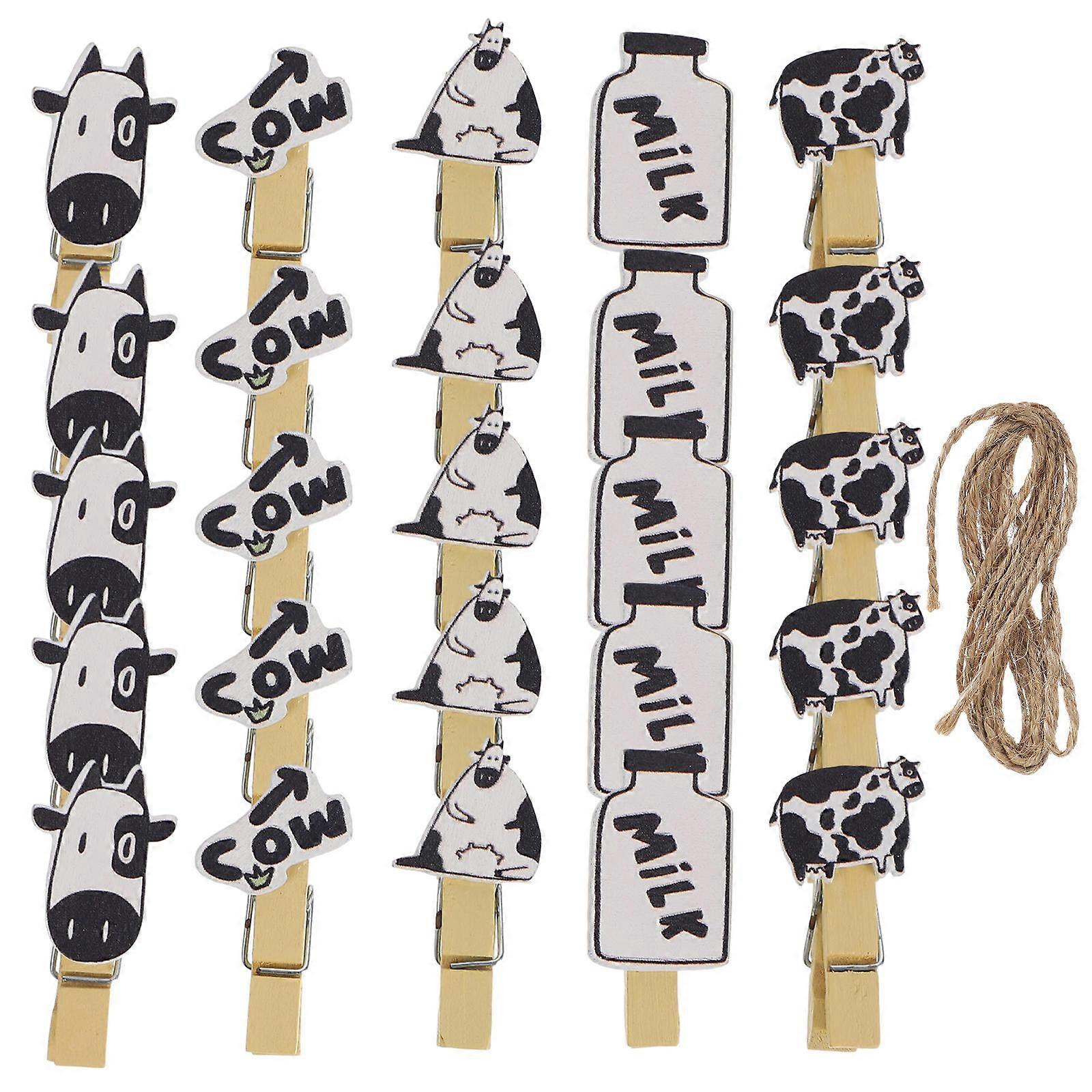 Wooden Picture Clips Cow Shaped Memos Fixed Clips 5Packs with Rope