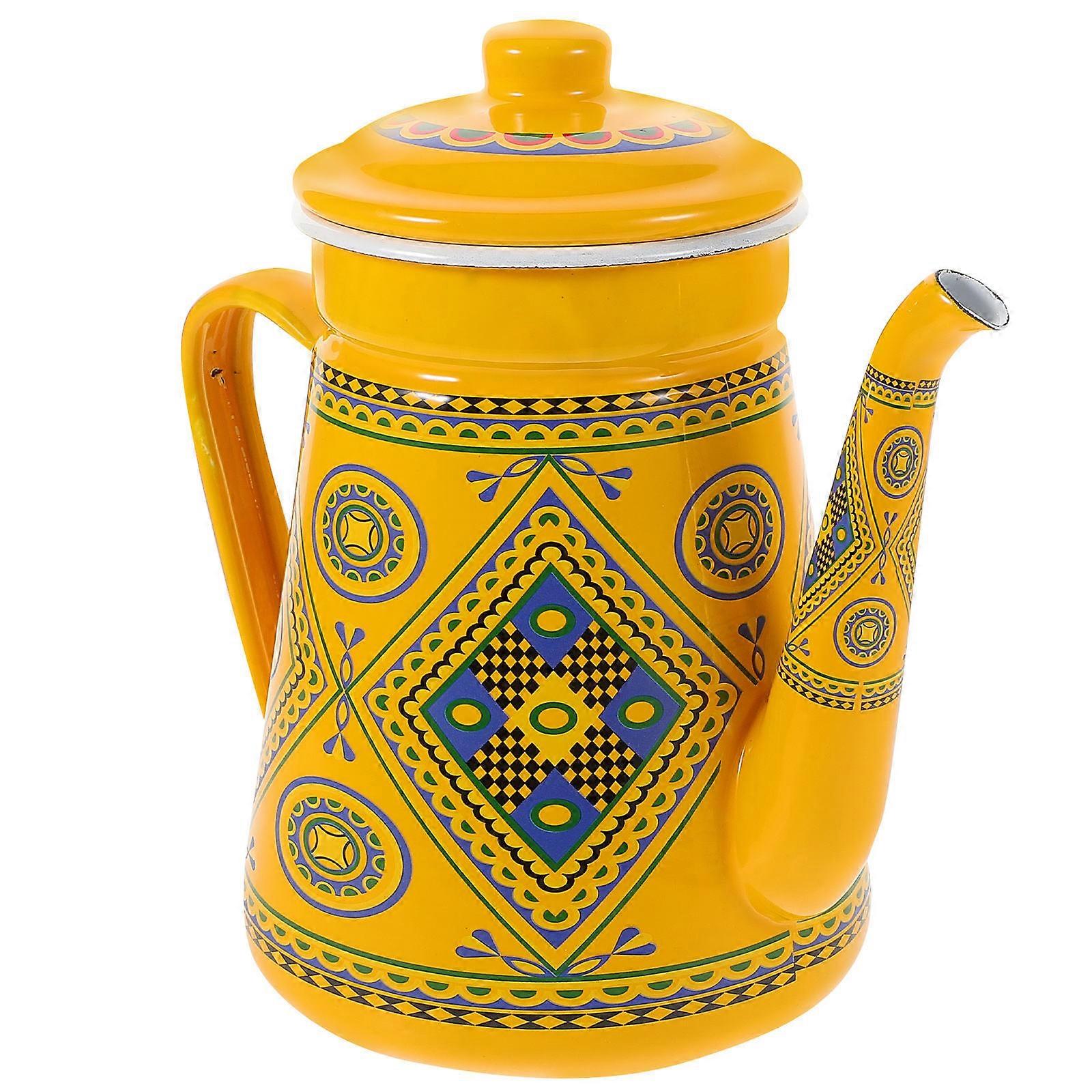 This water heating Kettle made of enamel material, this kettle is strong and durable. Its surface has beautiful patterns, which can add a touch of classicism to your home. It has good water boiling performance and can heat water in a short time, reducing your waiting time. A nice helper for you to make a cup of hot coffee or hot tea, bring you a good mood. Features - ColorOrange -Material:Enamel - Size: 22.00X13.00X20.00cm/8.65X5.11X7.86in -Volume: 1.5 L. -Efficiently boils up water for your green tea, white tea, black iced tea, herbal tea, etc. -With anti-scalding handle, comfortable to hold, this teapot will not burn your hands. -Beautiful design and excellent workmanship, showing your artistic temperament. Art teapot for dad, mom, friends, family, and tea lovers. -Owning the strong wear and break resistance ability, very delicate, practical and convenient. -With delicate pattern, a great tool for coffee lovers or tea lovers. Lightweight, easy to carry, you will have a wonderful using experience. Package list: 1 Kettle