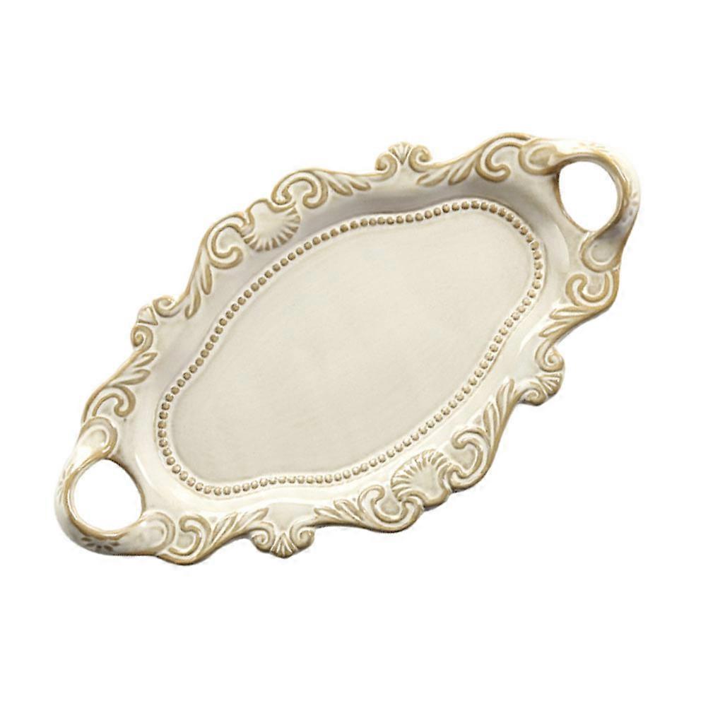 Food Plate Ceramic Double Handles Plate for Serving 1Pcs Western Dish
