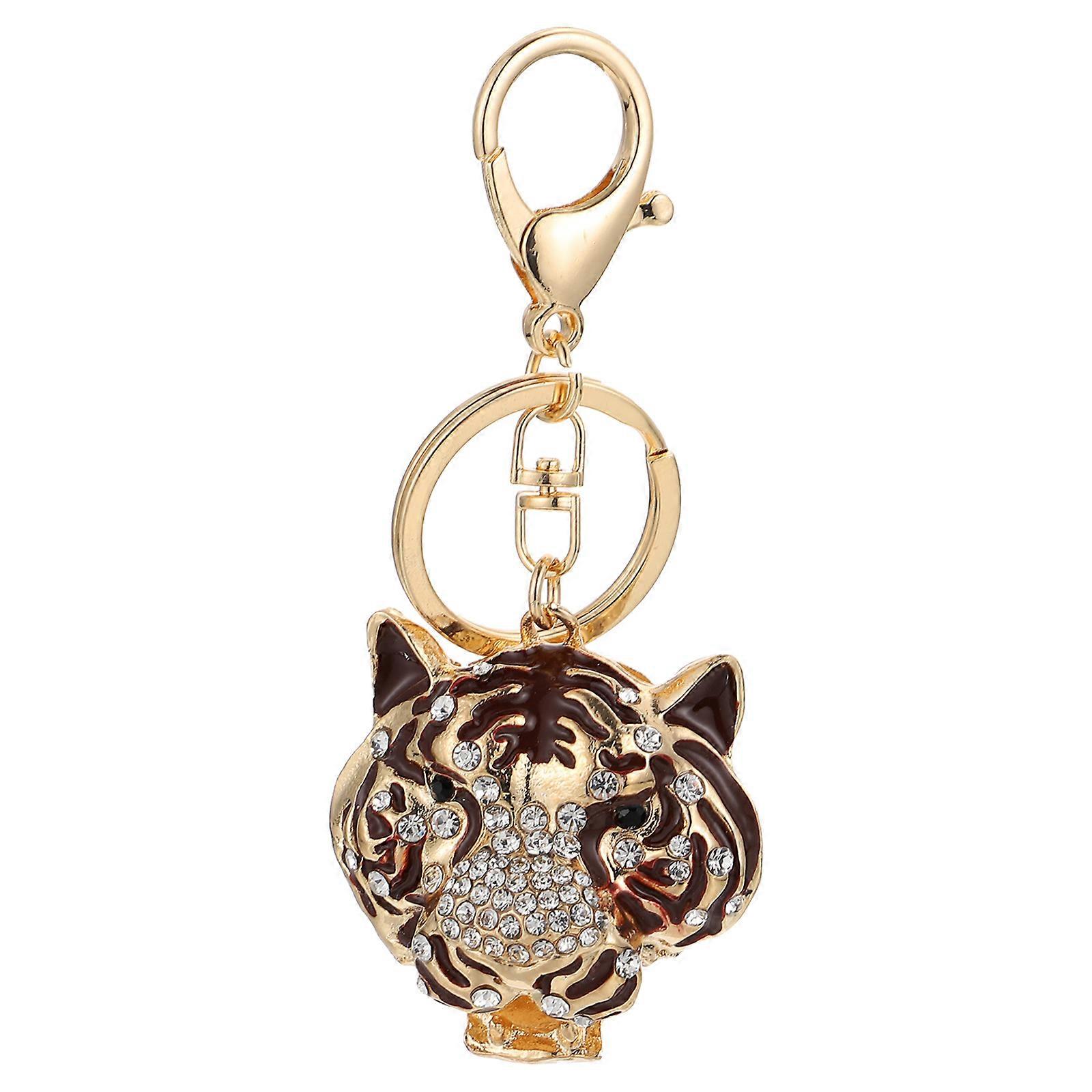 Tiger Shape Rhinestone Studded Keychain Pendant Gift For Men Women Everyday Use Golden 1Pcs