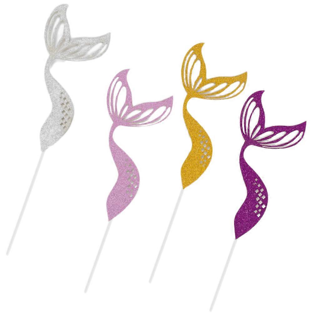 Glitter Mermaid Cake Toppers for Decoration 4Pcs Creative Cake Picks