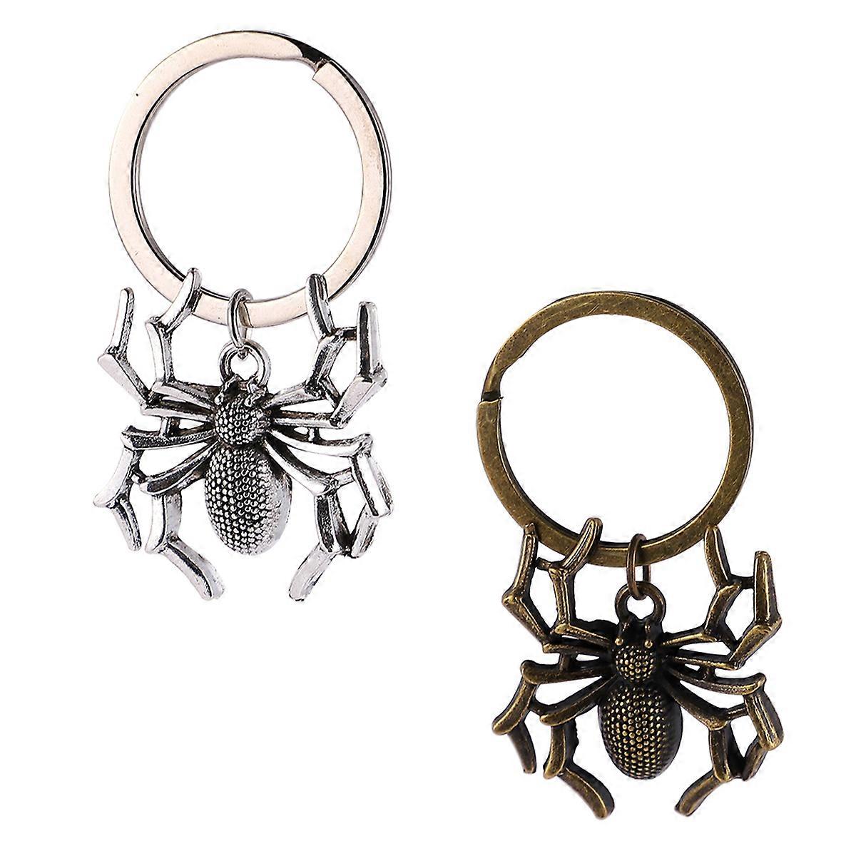 Spider Key Rings Halloween Gift Key Chain Hanging Key Holding For Man Woman Silver Bronze 2Pcs