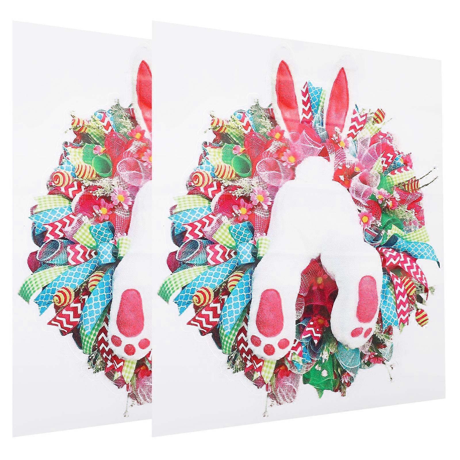 Rabbit Wreath Wall Decal for Living Room 4Pcs Adhesive Bunny Door Stickers