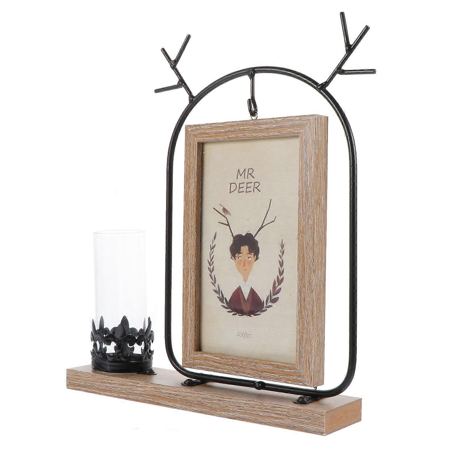 Metal Frame Hydroponic Plant Container Photo Holder Home Decoration Multi-Colored 26x22cm Desktop Photo Display 1Set