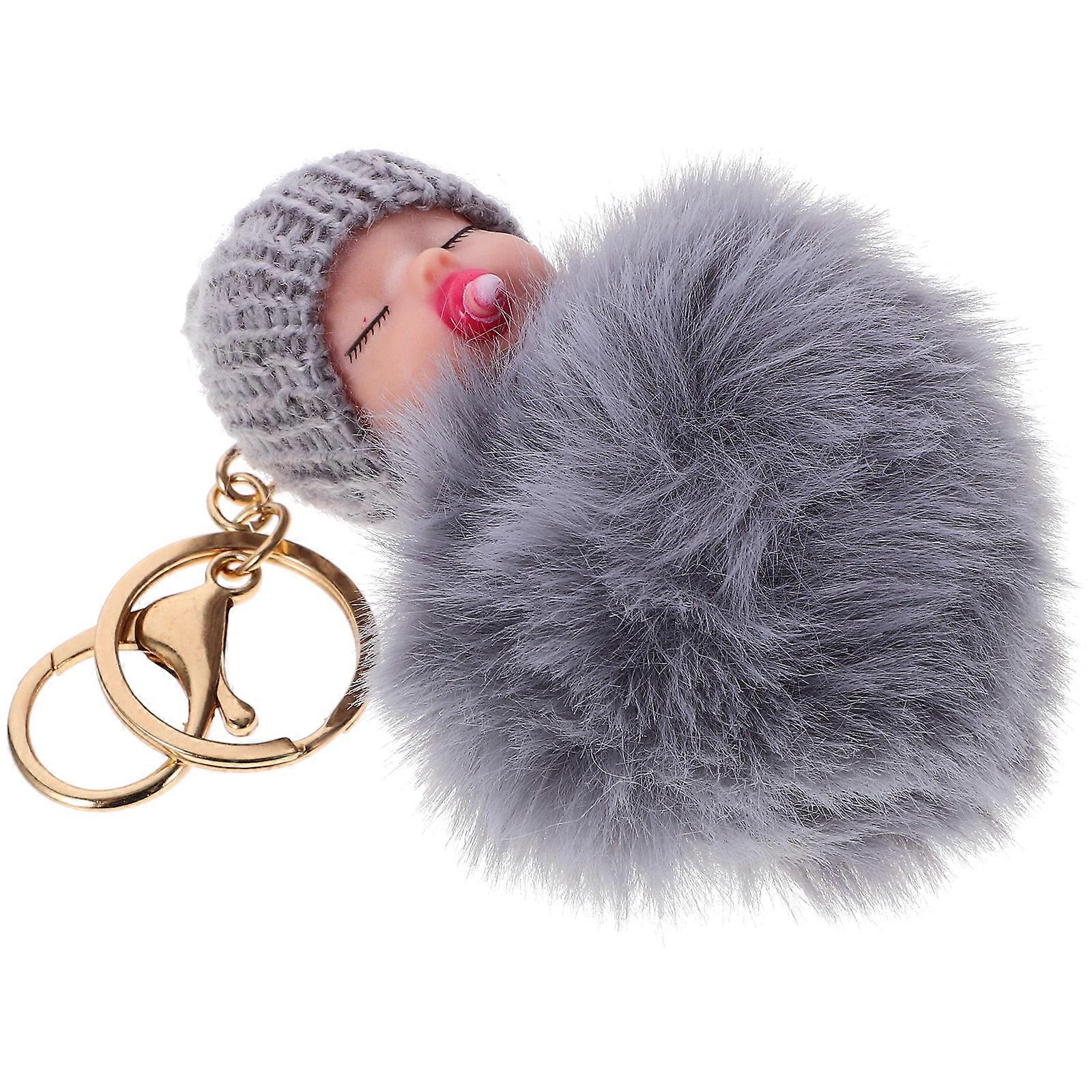 Adorable Keychain For Spring And Summer Gifts For Colleagues And Relatives In Grey Plush With Key Suspension 1Set