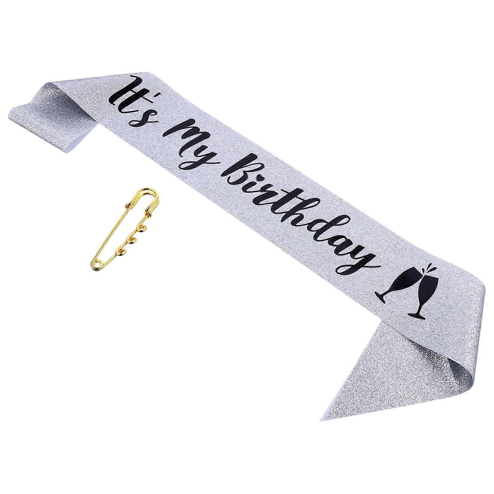 Birthday Sash Glitter Cloth Shoulder Sash for Party Use 1Pcs Silver