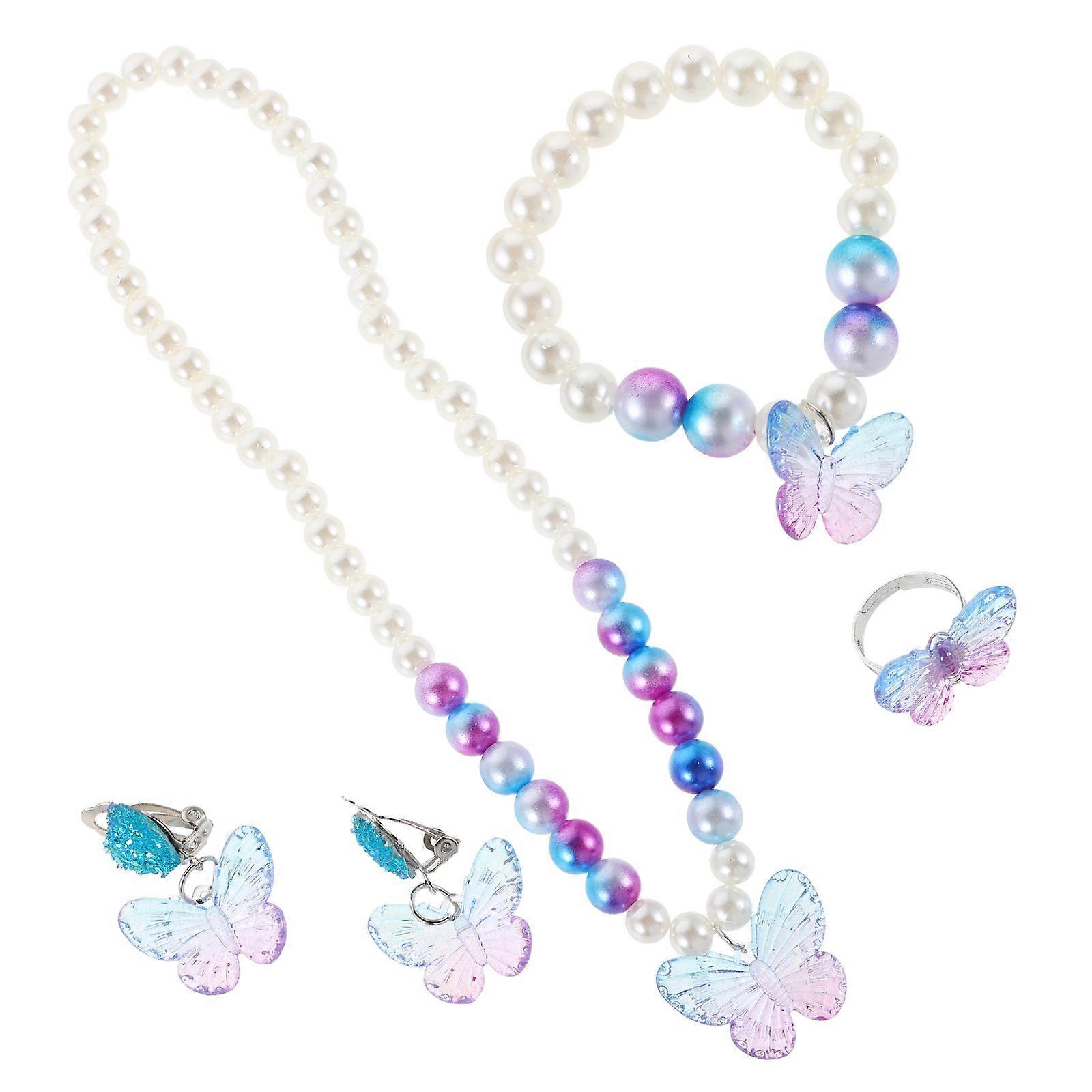5Sets Mermaid Jewelry Set with Butterfly Necklace Bracelet Earrings for Kids