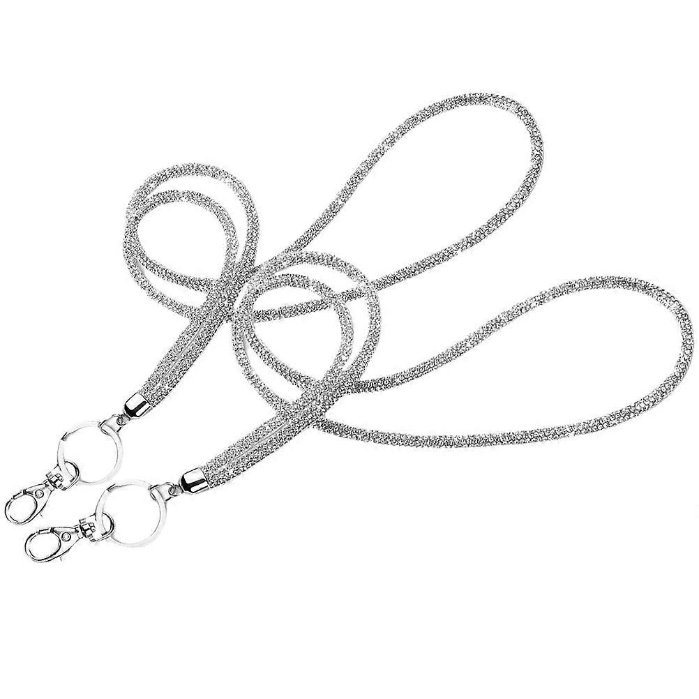 6Pcs Silver Keychain Lanyard with Rhinestones for Office Id Badge Holder