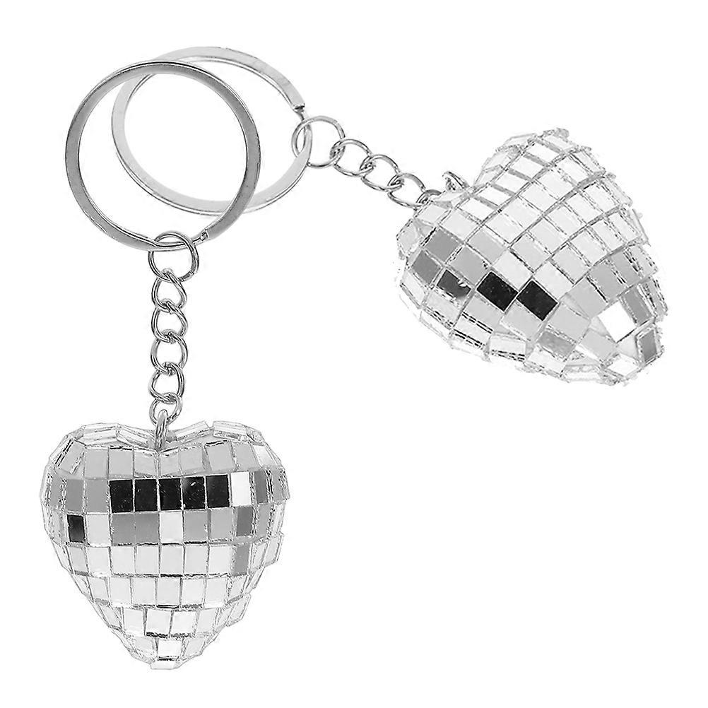 Reflective Disco Ball Heart Shaped Keychain for Decor 10Pcs Silver Metal Charm