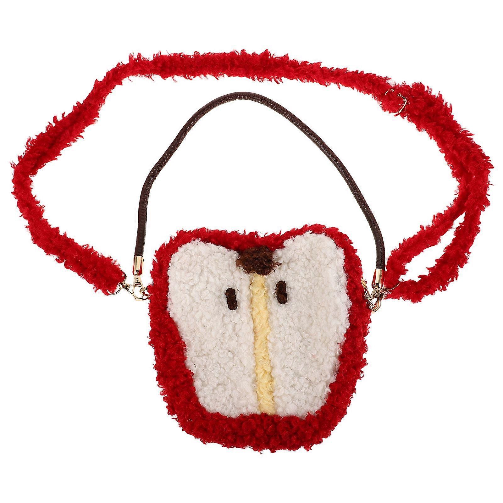 Girls Apple Plush Shoulder Bag 2Pcs Warm Fuzzy Fleece Crossbody Bag