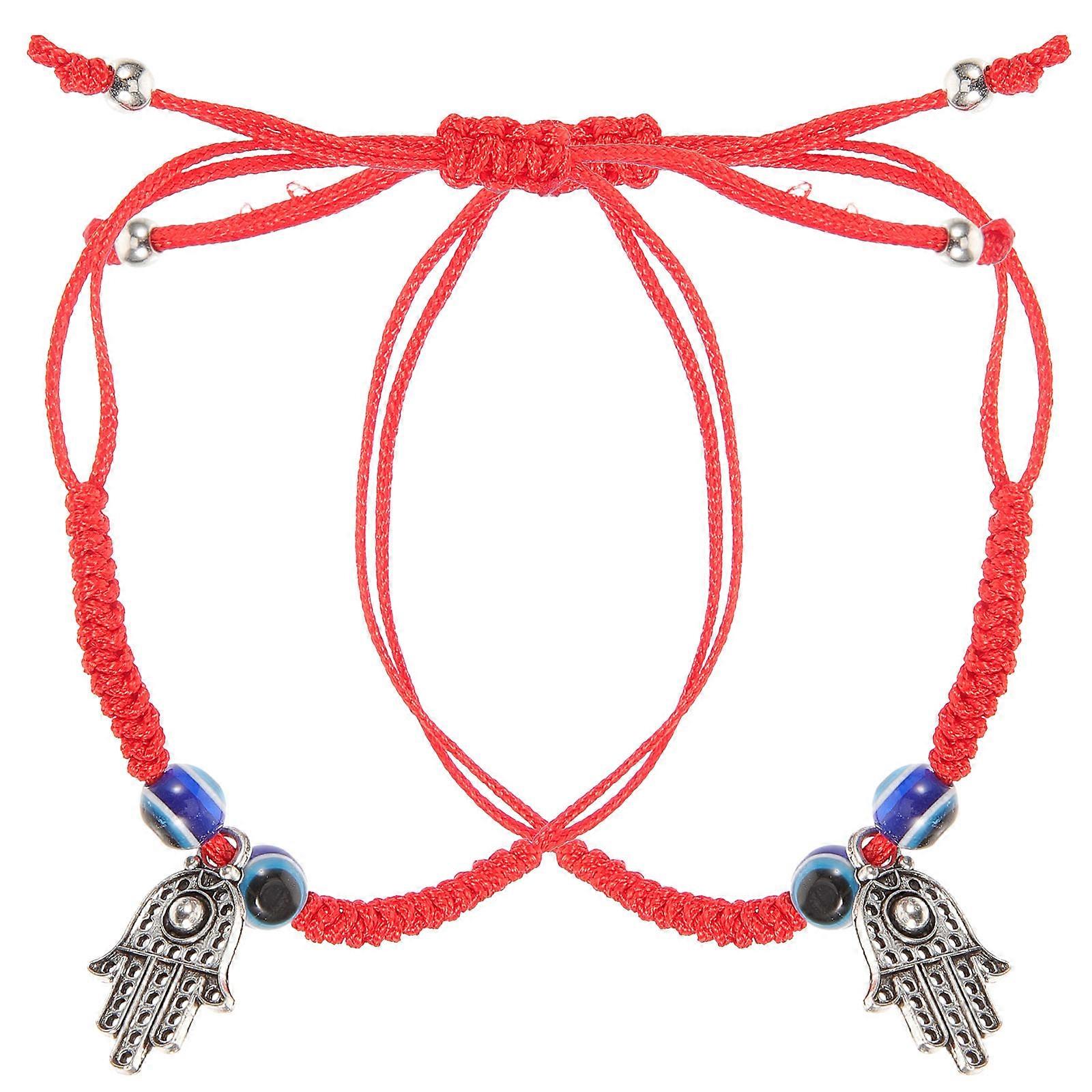 Evil Eye Men Bracelet Adjustable Knot Rope Glass Beads Alloy 2Pcs