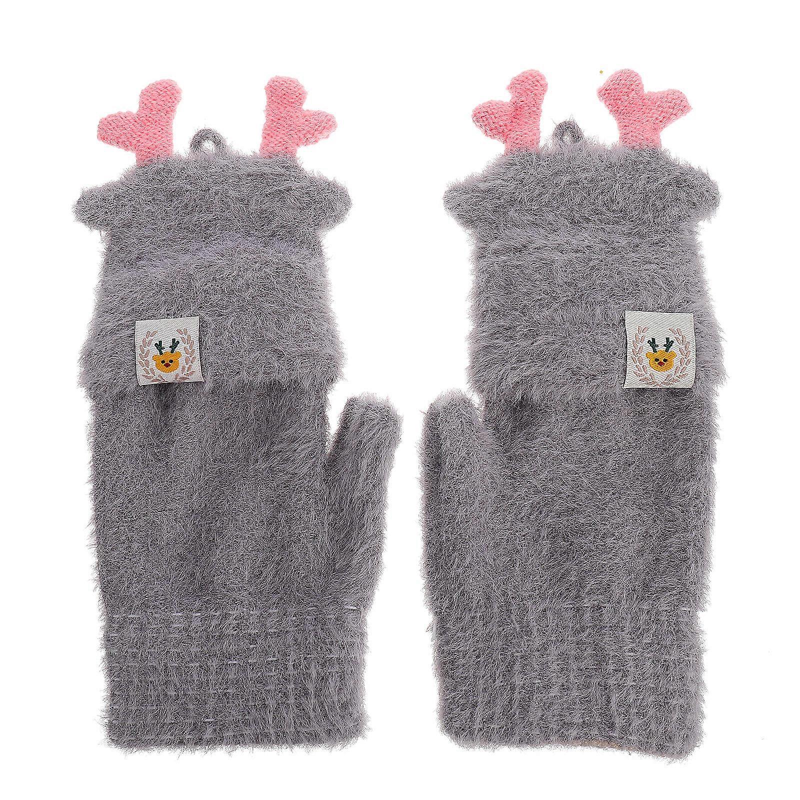 Lovely Gloves Half Finger Gloves for Winter Use with Antler 3Pairs