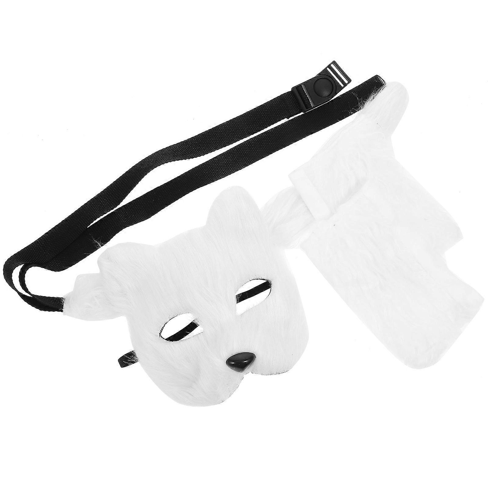 Wolf Mask Costume Animal Gloves Tail for Cosplay 2Sets White