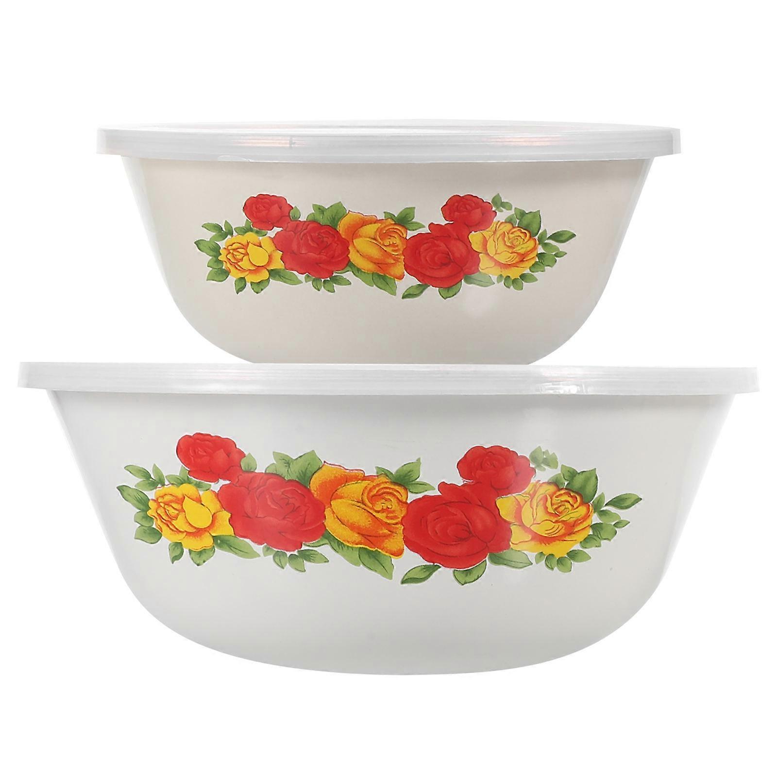 Enamel Bowls Practical Bowl Family Use Round Shape Material Easy to Clean 2Pcs