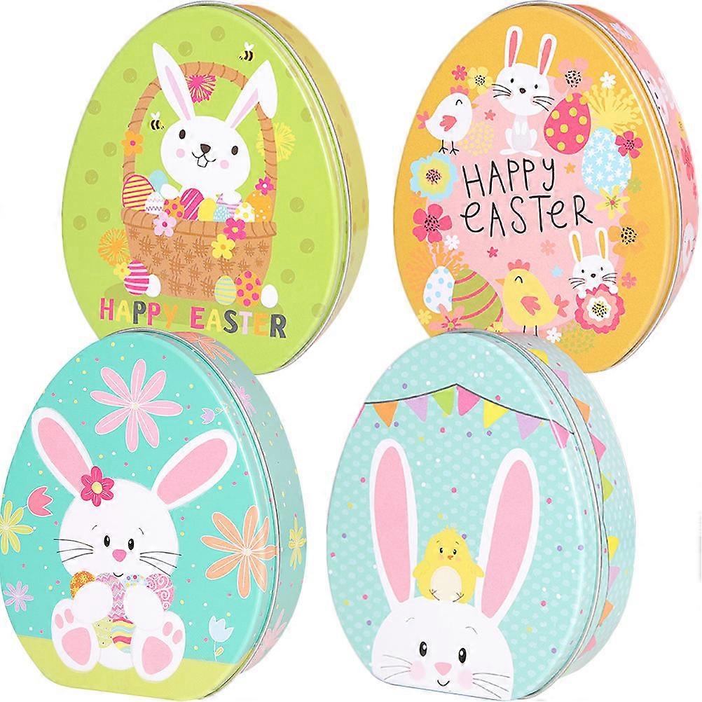 Easter Bunny Treat Containers Eggs Shaped Candy Tins With Lids Home Decoration 4Pcs