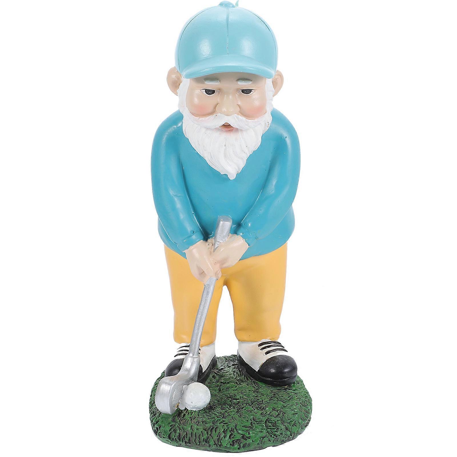 Golfing Gnome Sculpture for Patio Art 4Pcs Sky-Blue Resin Figures