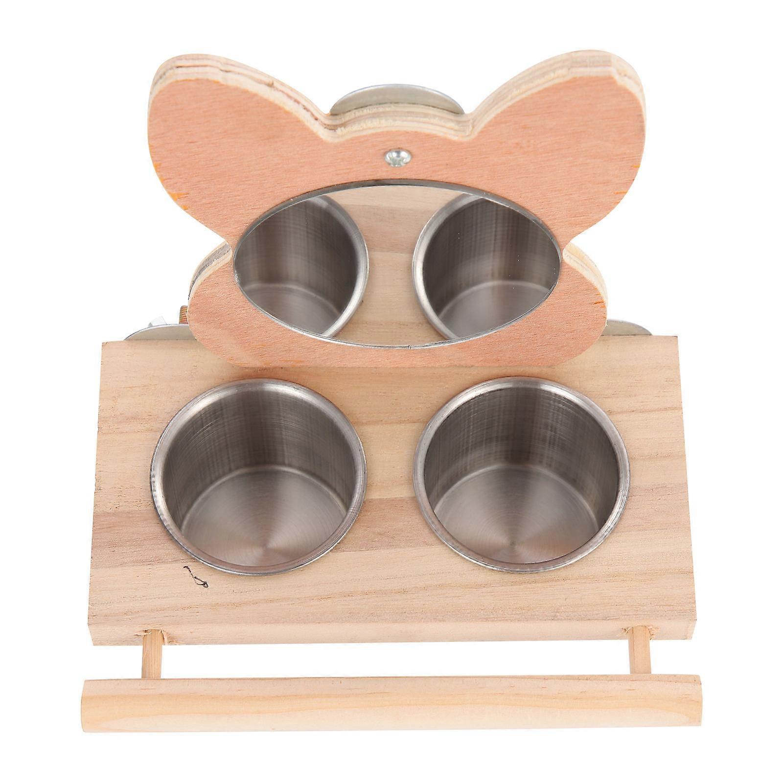Bird Mirror Parrot Food Cup Toy Set for Pets Made of Wood