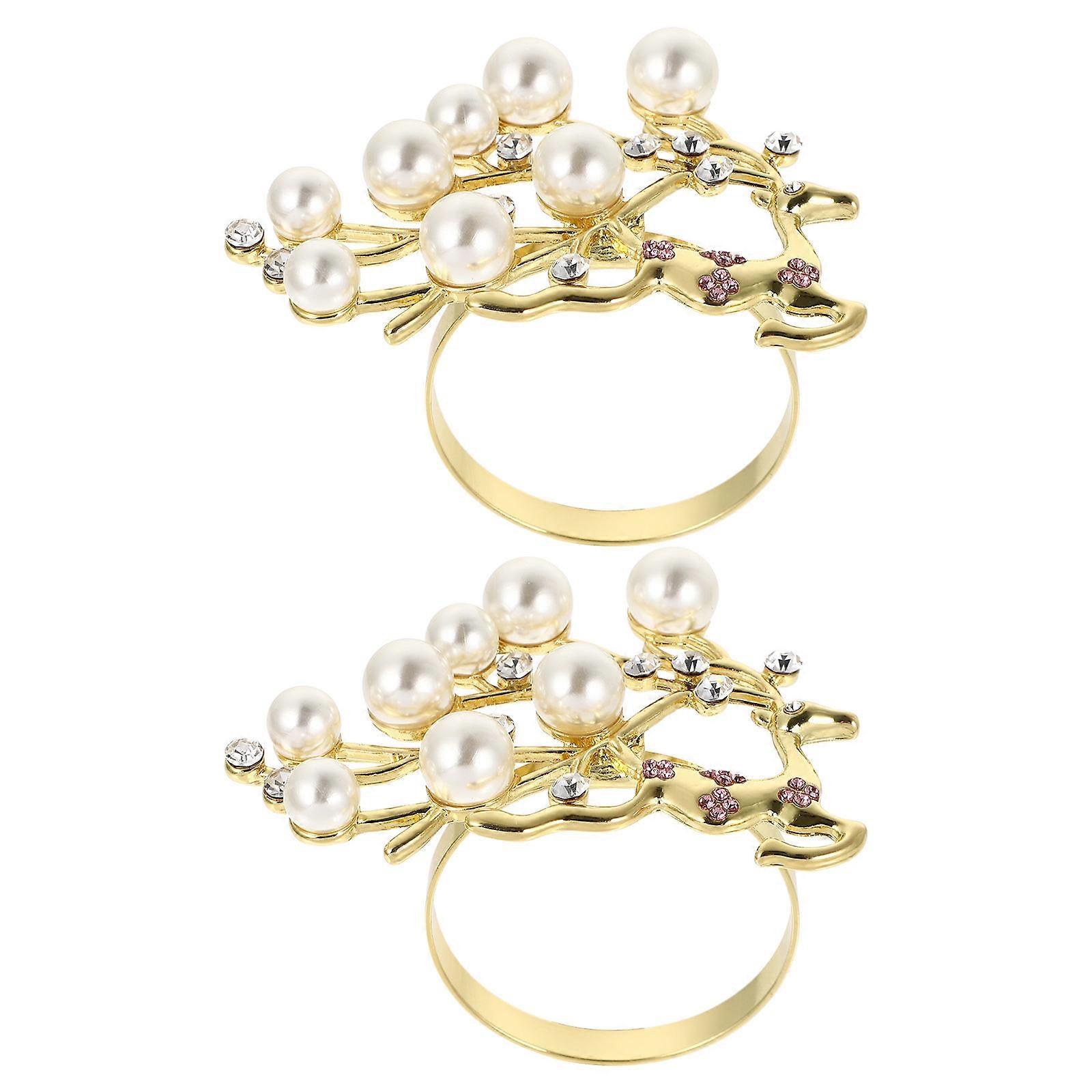 Golden Christmas Napkin Holders for Decoration 4Pcs Deer Shape Pearl