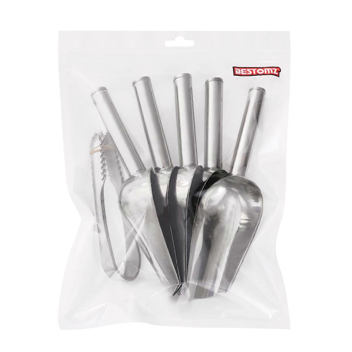 This is a pack of scoops and tongs which is made of material for practical use. It can help you take or in wedding or bar. Besides, it is also suitable for use with, grain, etc. Feature - Material: Stainless steel. - Size: 18.5 x 6 x 3. - ColorSilver Package list: 20 X BESTOMZ Scoops 20 X BESTOMZ Ice Tongs