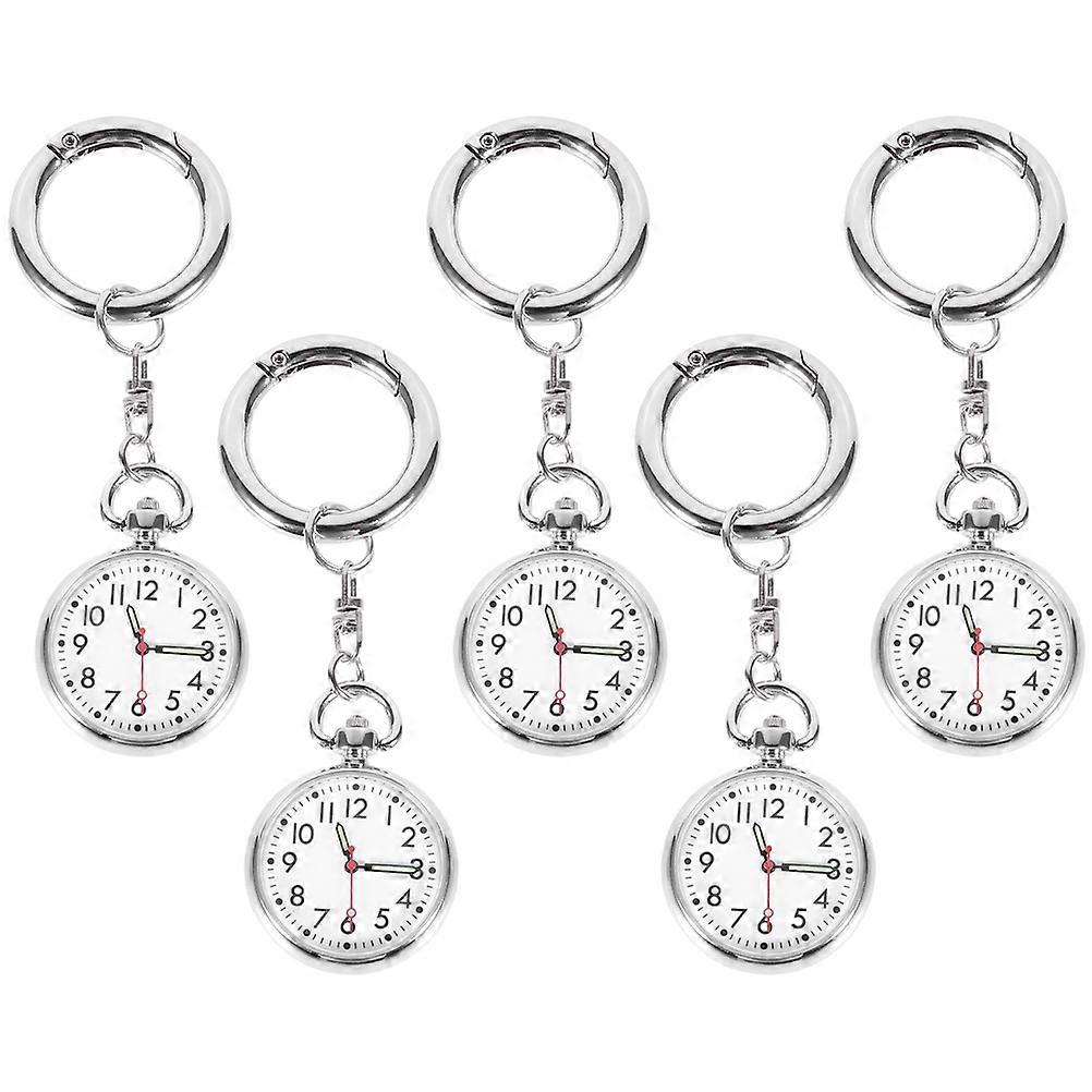 Assorted Color Stainless Steel Nurse Pocket Watch with Key Ring for Daily Use and Gifts 5 Pcs