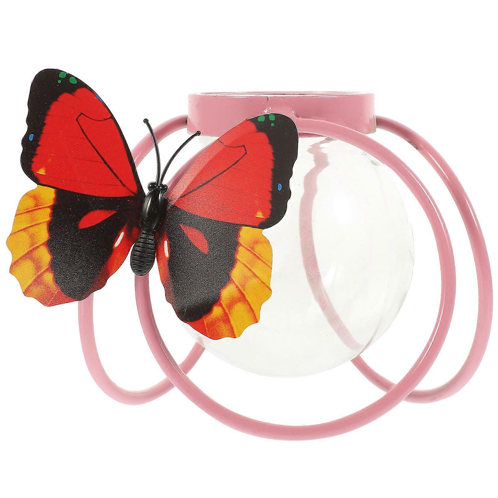 Hydroponic Planter Pink Glass Vase with Iron Frame Decorative