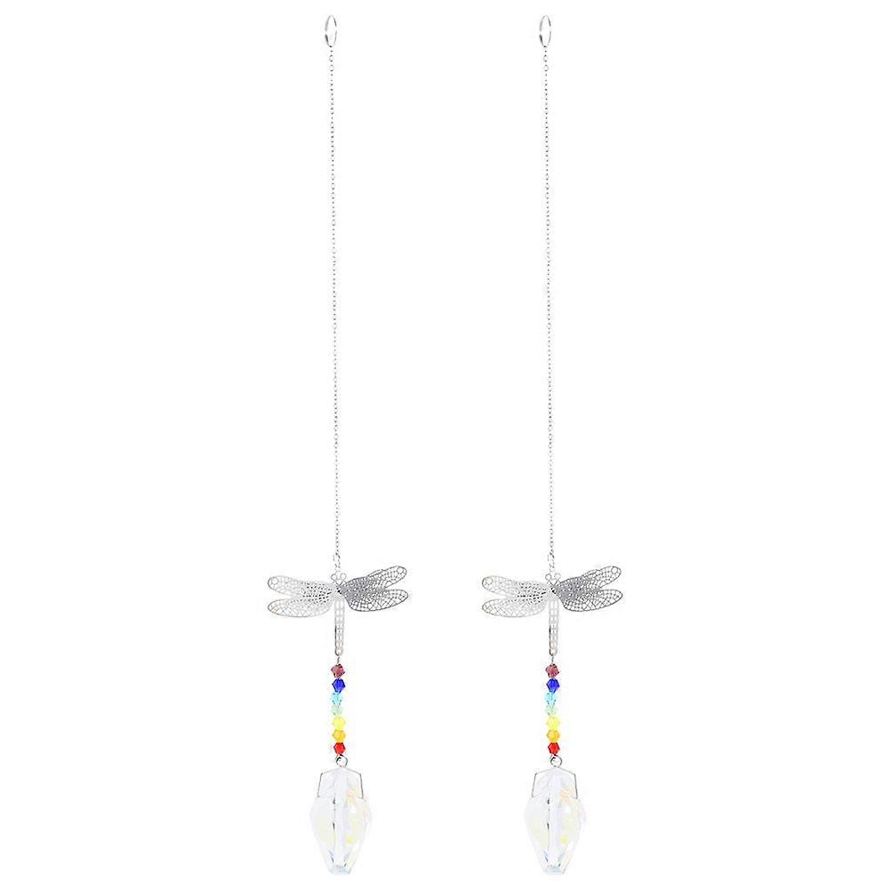 Crystal Dragonfly Pendant for Decor 4Pcs Hanging Suncatchers with Heart Chain