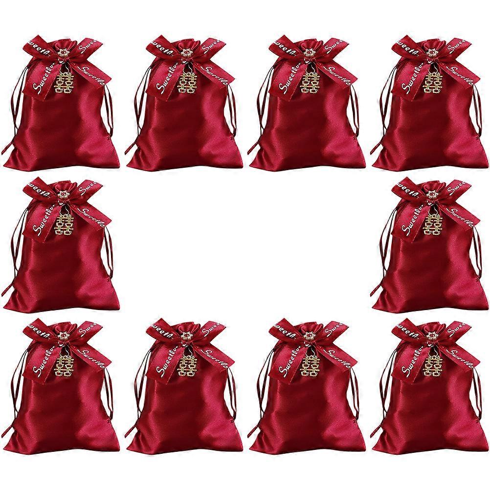 Red Drawstring Gift Bags for Party 10Pcs Cloth Wedding Favor Pouches