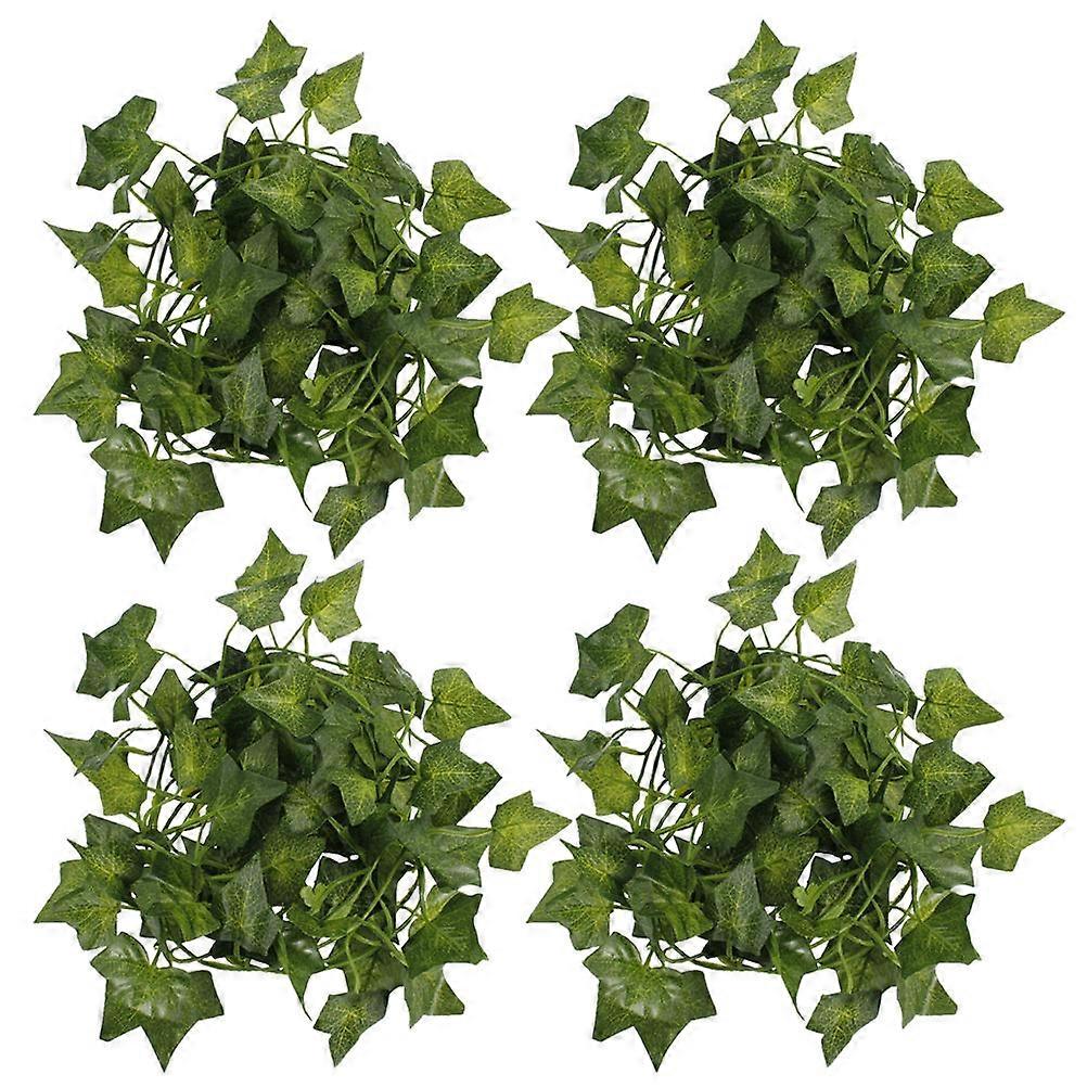Green Rattan Maple Leaves Plant For Gardens Plastic Vine Shape Hanging 4Pcs