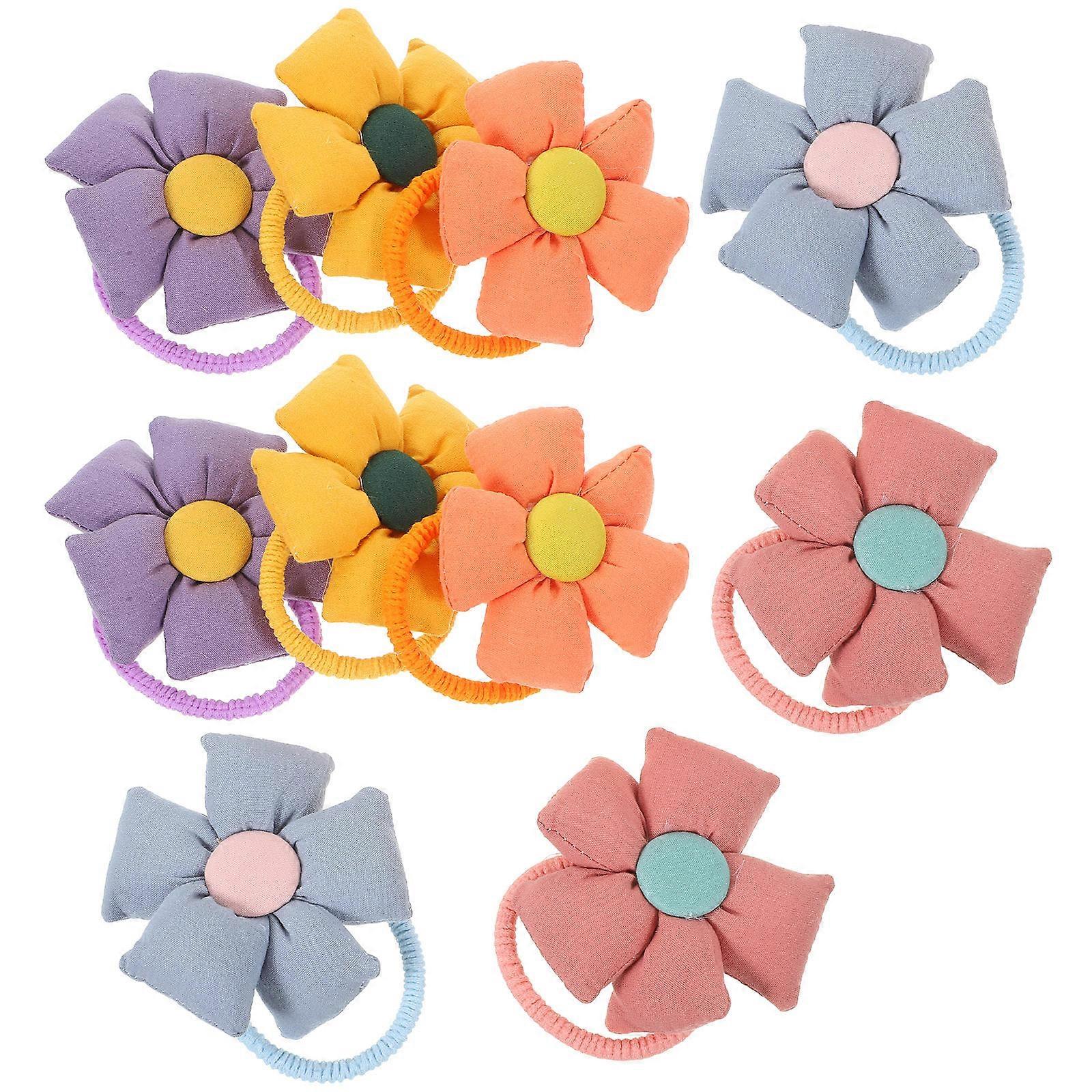 Flower Hair Ties Flower Hair Rings for Girls 10Pcs Elastic Ponytail Holders Assorted