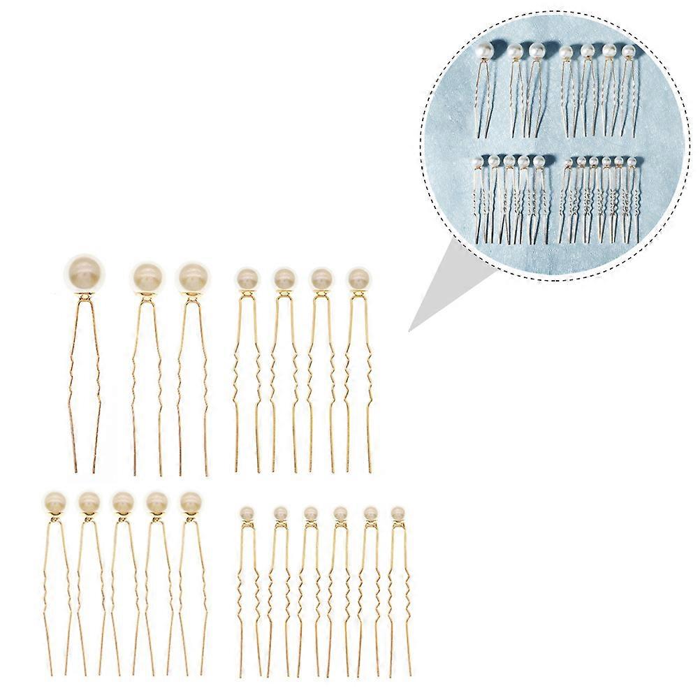 Bride Pearl Hairclip Hair Ornament for Decoration 18Pcs Golden Alloy